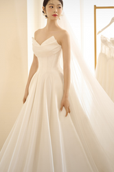 Sculpted from luxurious Mikado in an elegant off-white tone, this ballgown features a classic sweetheart neckline and a fitted corset. Its clean lines and voluminous silhouette make a bold yet timeless bridal statement.
