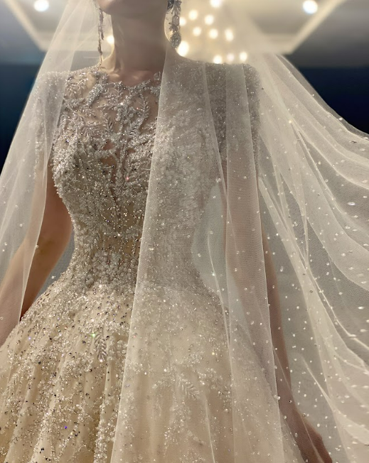 Step into a world of romance with this ivory ballgown, beautifully adorned with tulle, beading, and lace. The illusion neckline and cap sleeves add a delicate touch, while the low waist and corset ensure a stunning, flattering fit.