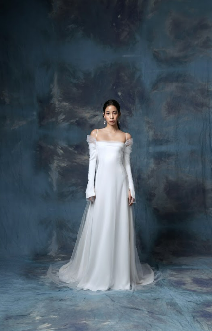 A vision in ivory, this tulle and lace ballgown blends romantic softness with sculpted structure. Intricate beading and floral textures highlight the semi-sweetheart neckline and layered skirt, while the corset bodice and off-shoulder detail add timeless charm. Made for the bride who loves classic beauty with a couture twist.